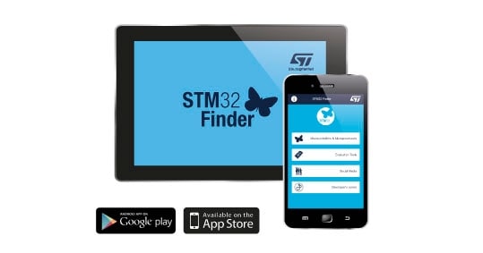 The STM32 Finder (STM32-FINDER) application enables users to explore and connect to the complete portfolio of STM32 Arm® Cortex®-M and Cortex®-A microcontrollers and microprocessors and their associated STM32 development boards from any mobile device.