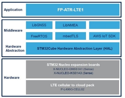 The FP-ATR-LTE1 is an STM32Cube function pack that allows you to connect an IoT node to Amazon Web Services using LTE cellular connectivity and view GNSS and MEMS sensor data using standard application layer protocols.