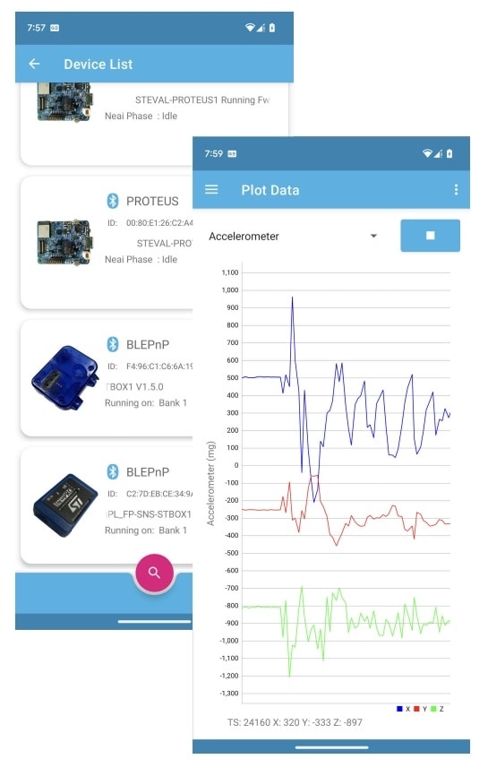 STBLESensClassic (ST BLE Sensor Classic) application is available for Android and iOS and shows the data exported by a BLE device using the BlueST protocol.