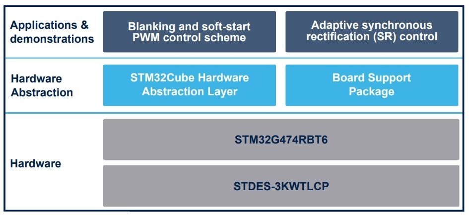 A digital solution by the STM32G474RBT6 digital power MCU is used for both PFC and DC-DC stages.