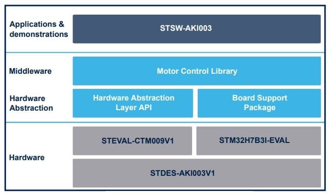 STSW-AKI003 is a customized version of X-CUBE-MCSDK that exploits the sigma-delta hardware filtering capabilities of the STM32H7B3LI microcontroller to perform three-phase motor current measurements.
