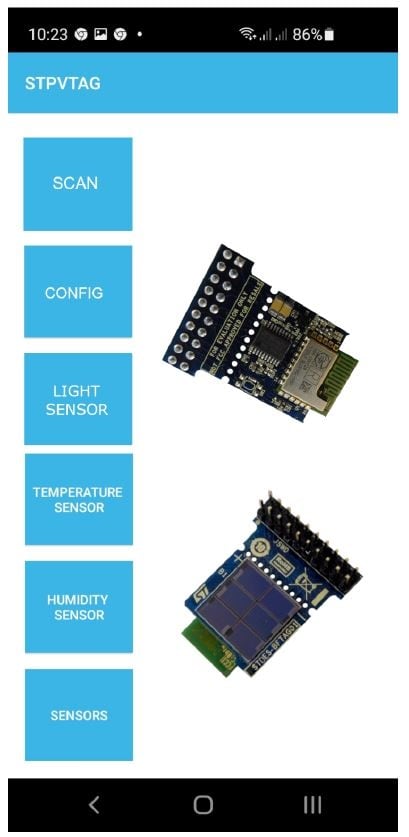 The STSW-BFTAG-APK (STPVTAG) app allows generating graphs of the sensor data, such as humidity, temperature and light intensity, transmitted via Bluetooth low energy by the STDES-BFTAG01 wireless sensor tag.