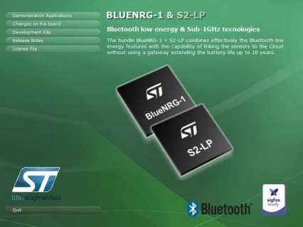 The package supports the BlueNRG-1/2 and S2-LP kit platforms available on related web pages to build dual radio applications. It provides a set of BLE demonstration applications with Bluetooth low energy scenarios coupled with the long range capabilities of sub-1 GHz technology.