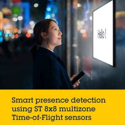 Based on ST's fourth generation of FlightSense sensors, the STSW-IMG048 software package can work with two 8x8 multizone Time-of-Flight sensors: the VL53L7CX or the VL53L8CX, using the same and unique software. Using a turnkey solution based on FlightSense technology provides full privacy as it uses ST’s ToF sensors to compute distance information without the need for a camera module. The solution’s performance is not affected by target reflectance, making it suitable for use in low light conditions. The sensors are small and can be easily integrated and hidden behind a dark cover glass. The smart presence detection solution can be combined with the turnkey gesture recognition solution based on the same sensors.