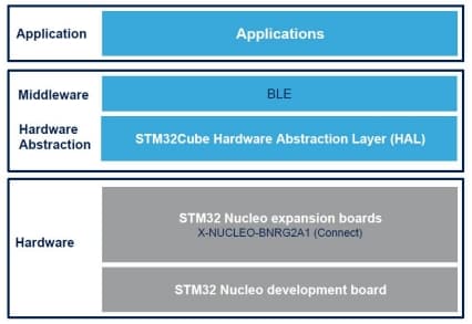 The X-CUBE-BLE2 expansion software package for STM32Cube runs on the STM32 and includes drivers for BlueNRG-2and BlueNRG-2N Bluetooth® low energy devices.