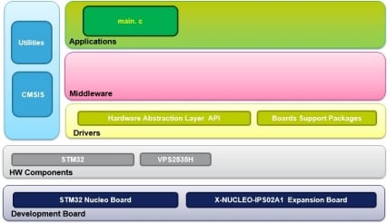 This software is to manage Intelligent Power Switch based on VPS2535H allowing to control the 2 channels output and measure currents on connected load. It is built on top of STM32Cube software technology, to ease portable across different STM32 microcontrollers.