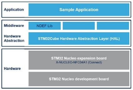 - Sample implementation available on the X-NUCLEO-NFC04A1 expansion board, plugged into a NUCLEO-F401RE, NUCLEO-L053R8, or NUCLEO-L476RG board.