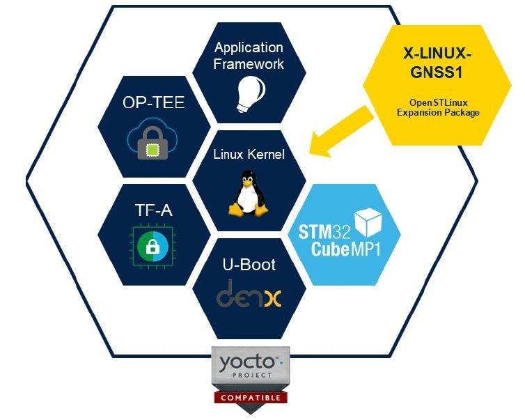 - Complete software to build GNSS applications on OpenSTLinux for X-STM32MP-GNSS1 and X-STM32MP-GNSS2 boards.