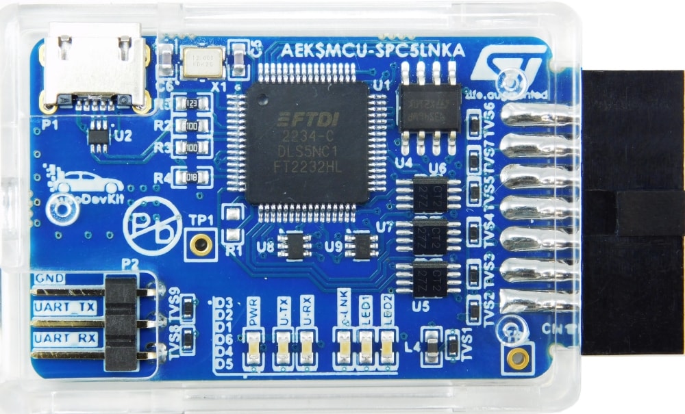 Two different types of dongles are available: AEK-MCU-SPC5LNK, to be used with OpenOCD, and AEK-MCU-SPC5LNKU, to be used with UDE PLS.