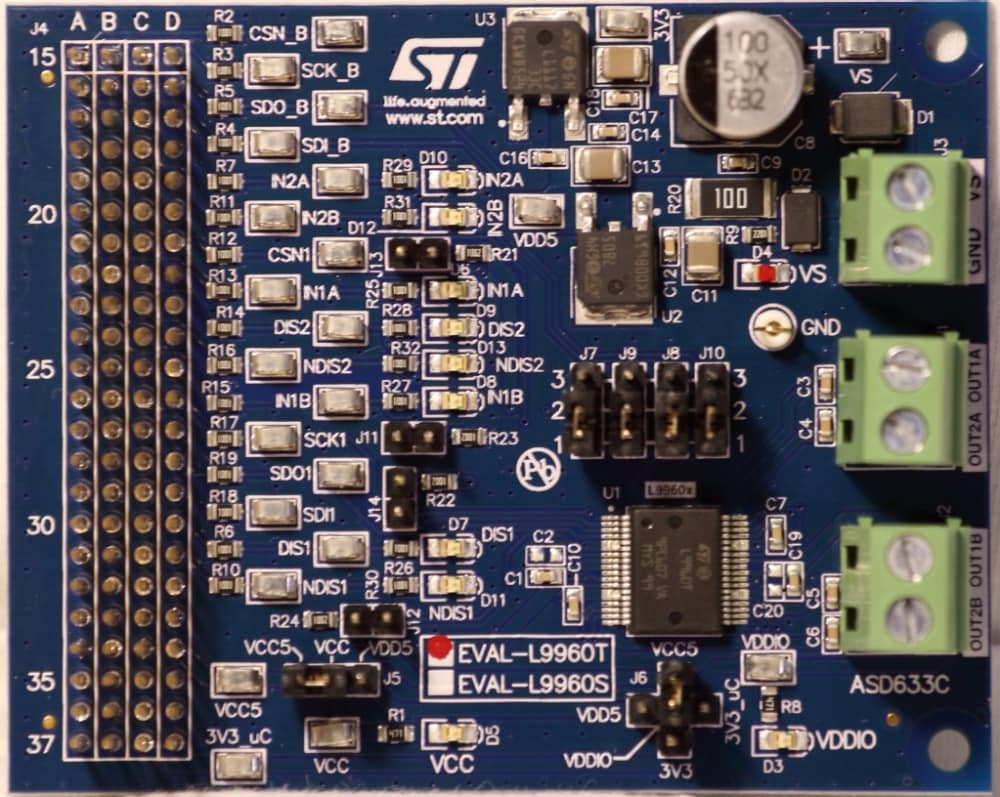 The EVAL-L9960 and EVAL-L9960T are the simplest solution to evaluate respectively the L9960 and L9960T functionalities providing all the inputs and outputs capabilities necessary to drive DC motors and monitor diagnostic functions.