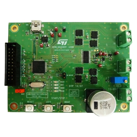 The EVAL6480H-DISC is an ideal starter kit for both beginners and experienced users, it is autonomous and can be used with a software interface, or it can be used with custom firmware thanks to the embedded microcontroller.