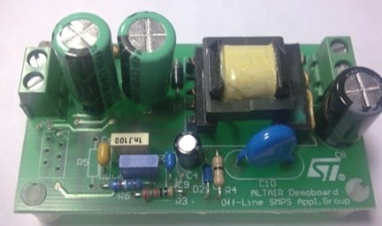 The core of the application is the ALTAIR05T-800, the first “All-primary sensing switching regulator” of the new ALTAIR family.