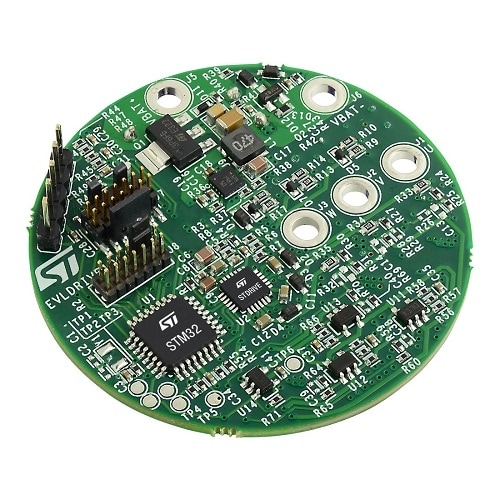 EVLDRIVE101-HPDは、STM32G071KBマイクロコントローラと組み合わせたSTDRIVE101デバイスをベースとする、ブラシレス・モータ用の超小型三相インバータです。FOCや台形制御、センサ付きやセンサレスなど、極めて多様な駆動手法で使用できます。このボードは、高出力電流を必要とするバッテリ駆動の三相アプリケーションに理想的な、すぐに使える柔軟性の高いソリューションです。EVLDRIVE101-HPDは、バッテリの接続 / 切断を行う高速電源オン回路を内蔵し、バッテリの持続時間を大幅に延長します。低Rds(on)のSTL220N6F7 MOSFETにより、最大750Wの超高負荷電流での動作が可能です。設計全体は、直径50mmのコンパクトな円形レイアウトが施されています。