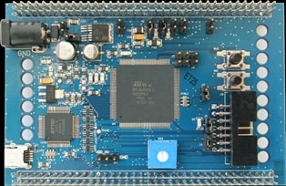 - Two extension headers (2 x 36 pin - 100 mil) for all LQFP144 pins and for quick connection to prototyping boards, additional modules and easy probing.