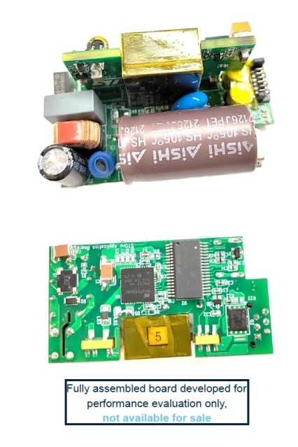STDES-65ACFADP is a 65W USB PD adaptor reference design showing high efficiency performance over the entire operation load range and across the universal mains input voltage range.