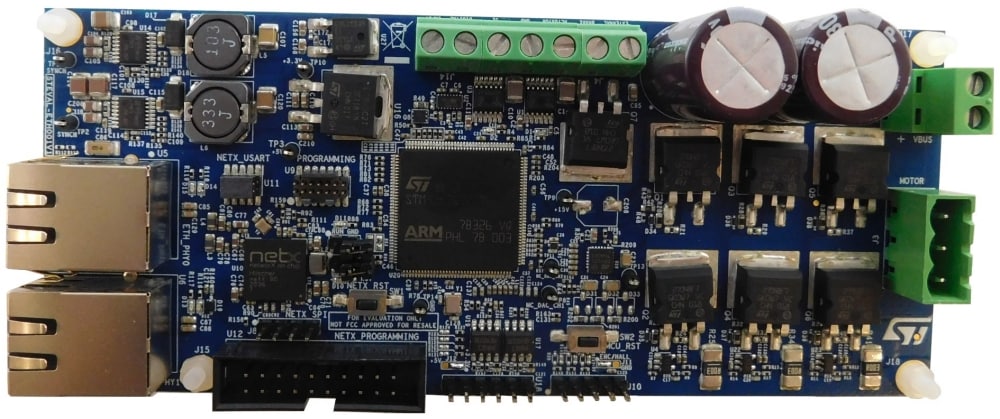 The STEVAL-ETH001V1 servo drive evaluation board has been developed to address three-phase PMSM applications oriented to multi-axial position control and connectivity.