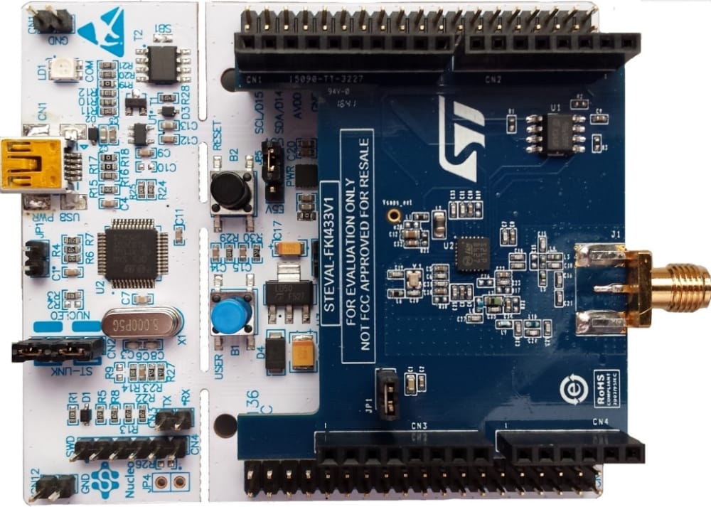 The STEVAL-FKI433V1 evaluation board is based on the S2-LP sub-1 GHz ultra-low power, low data-rate transceiver suitable for ISM bands and Wireless M-Bus.