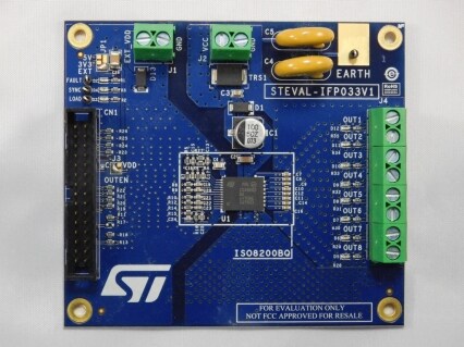 The STEVAL-IFP033V1 functions with the STEVAL-PCC009V2 or STEVAL-PCC009V1 interface board to allow evaluation of the ISO8200BQ device. A large GND area on the printed circuit board is included to minimize noise effects and ensure good thermal performance.