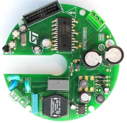 The control part includes field oriented control with sensorless control algorithm, fault detection and speed setting via remote control (IR receiver), all handled by the STM32F100C6T6B microcontroller from ST’s ARM®Cortex™-M3 core-based low density STM32™ MCU family.