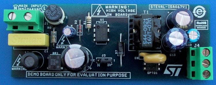 This demonstration board has additional features asked by many customers: Standby wattage as low as 50 mW at no load.