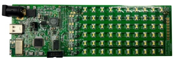 The STP16CPC26 low voltage 16-bit constant current LED sink driver on the STEVAL-LLL005V1 evaluation board ensures a cost effective 6x10 LED matrix with individual LED control.
