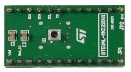 The STEVAL-MKI220V1 can be plugged into a standard DIL 24 socket. The adapter provides the complete LPS27HHTW pinout and comes ready-to-use with the required decoupling capacitors on the VDD power supply line.