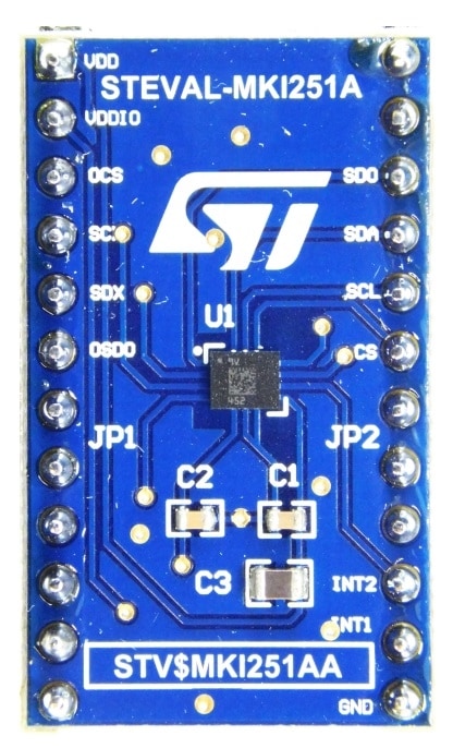 The STEVAL-MKI251A is an adapter board designed to facilitate the evaluation the LSM6DSV320X 6-axis IMU (inertial measurement unit).
