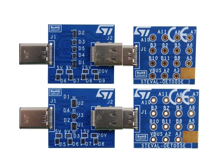 The STEVAL-OET005 kit allows evaluating ST ESD protection devices or filtering devices for USB Type-C connectors.