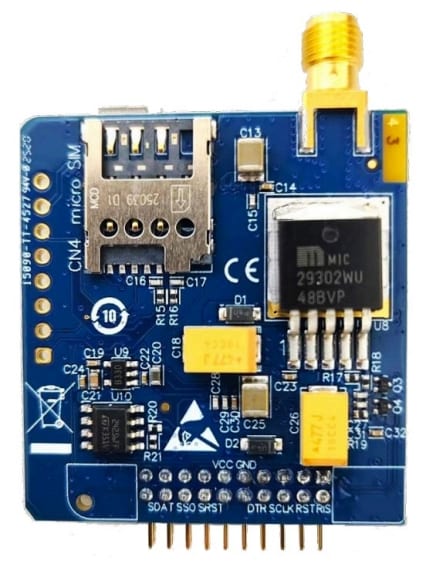 It embeds a cellular modem compatible with LTE Cat M1 & Cat NB1 & EGPRS netowrks and with an initial connectivity provided by a trusted telecom operator partner..