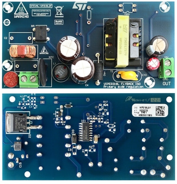 The STEVAL-VP318L2F implements a 15 V-18 W isolated flyback converter in primary side regulation (PSR) developed for general purpose applications, operating from 90 to 265 VAC.