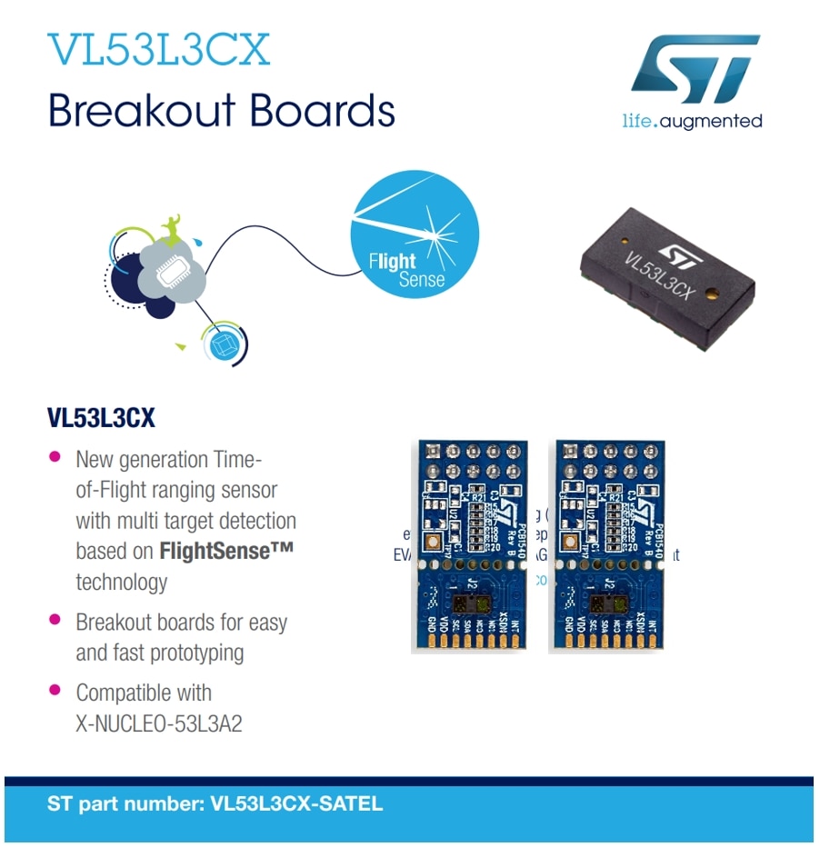 The VL53L3CX-SATEL breakout boards can be used for easy integration into customer devices.