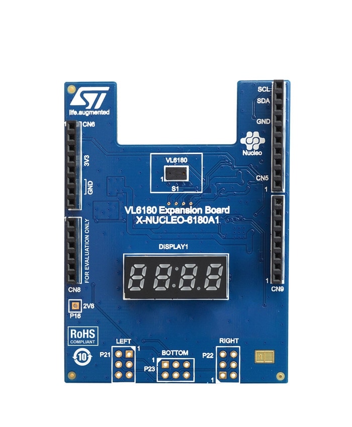 The X-NUCLEO-6180A1 expansion board features the VL6180 proximity sensor, based on ST’s FlightSense, Time-of- Flight technology. It is an evaluation board that provides an introduction to the proximity ranging capabilities of the VL6180 module.