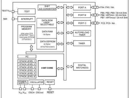 These compact low-cost devices feature a Timer comprising an 8-bit counter and a 7-bit programmable prescaler, an 8-bit Auto-Reload Timer, EEPROM data capability (except ST62T52C), an 8-bit A/D Converter with 4 analog inputs and a Digital Watchdog timer, making them well suited for a wide range of automotive, appliance and industrial applications.