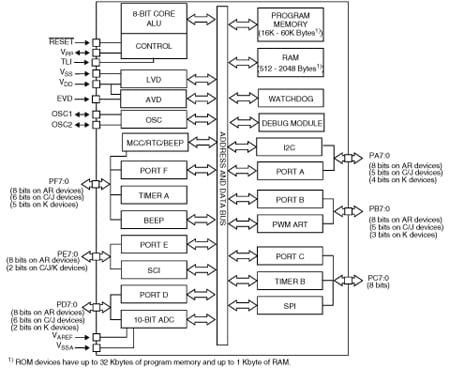 All devices are based on a common industrystandard 8-bit core, featuring an enhanced instruction set and are available with Flash or ROM program memory. The ST7 family architecture offers both power and flexibility to software developers, enabling the design of highly efficient and compact application code.