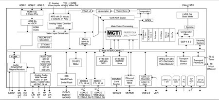 - ST231 @ 450 MHz for advanced high definition video decoding (H.264/VC-1/MPEG2/…) --> Worldwide Digital Terrestrial Television (DTT) broadcast video standards compatibility